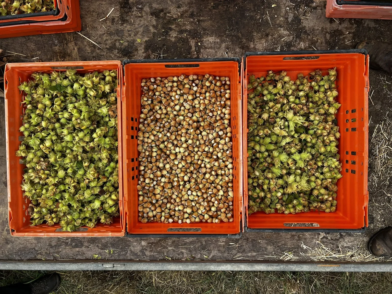 Between 2021 & 2023, we planted 240 nut trees here at Joy Farms, alongside over 1,000 English broadleafs — part of our long-term commitment to farming with nature. Among them are Kent Cobnuts, Gunslebert Cobnuts, and Walnuts. Six years on, the trees are still young, so the harvest is small, but every year the crop grows stronger.